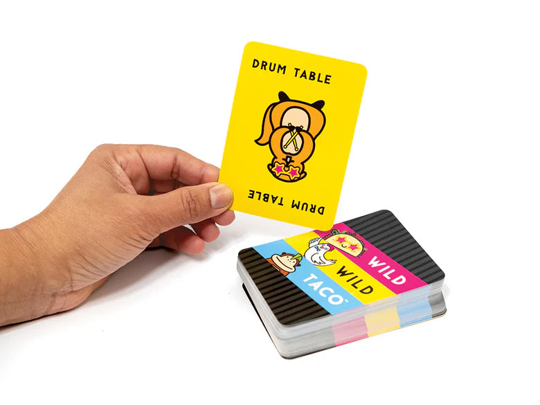 Players take turns flipping over their cards while saying, "Wild, Wild, Taco!" When a card played matches the one before it, everyone does the corresponding action and races to slap the pile. The first to get rid of all their cards wins!